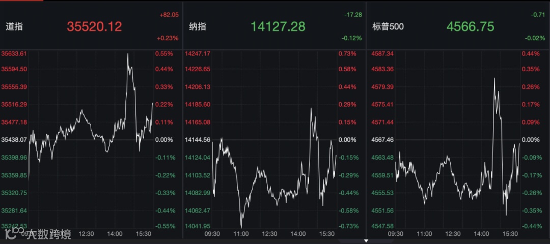 鲍威尔话音落地,美股巨震,道指盘中一度直线拉升超223点,截至收盘,道琼斯指数涨0.23%,连续13个交易日上涨,追平最长连涨纪录;纳指跌0.12%,标普指数跌0.02%。热门中概强势跑赢,纳斯达克中国金龙指数大涨近3%,创3月6日以来的最高,新能源汽车股集体狂飙,小鹏汽车大涨近27%,蔚来汽车涨近11%,理想汽车涨超3%。