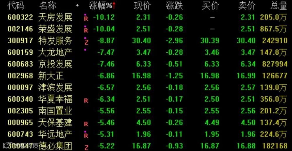 近日强势的地产板块今日回调。截至收盘,天房发展、荣盛发展跌停,特发服务跌近9%,大龙地产、京投发展跌超7%。此外,4连板牛股金科股份今日开板,收盘上涨5.39%报2.15元,盘中最高至2.24元,较5月底的低点已涨超2倍。