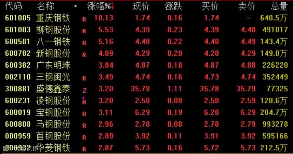 钢铁板块今日再度走强,截至收盘,重庆钢铁涨停,柳钢股份、八一钢铁涨超5%,新钢股份涨4.89%。值得注意的是,重庆钢铁已连续两个交易日涨停。