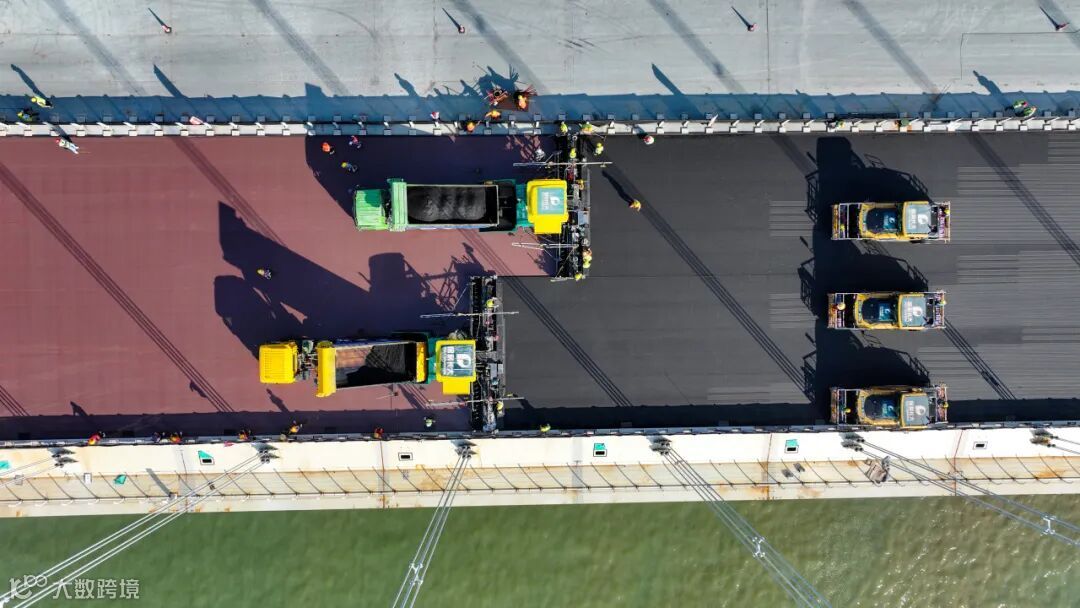 11月1日,国家重大工程深中通道伶仃洋大桥开始钢桥面铺装,当天顺利完成主桥左幅钢桥面首次铺装施工,单日铺装面积达25772平方米。
