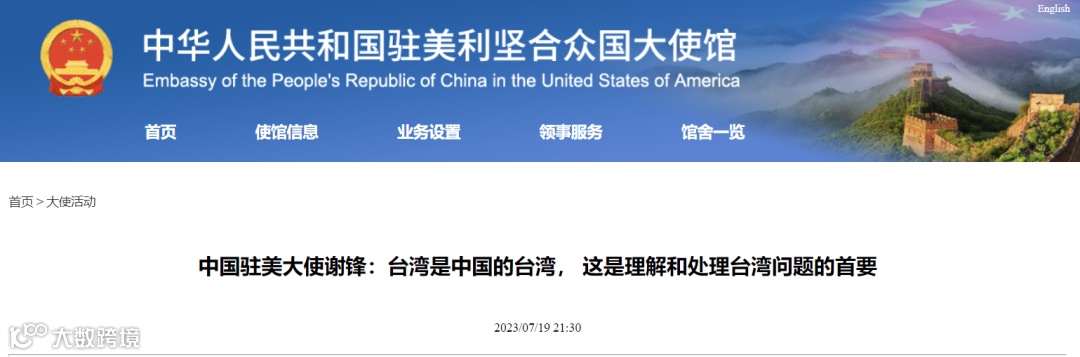 中国驻美大使谢锋:台湾是中国的台湾,这是理解和处理台湾问题的首要