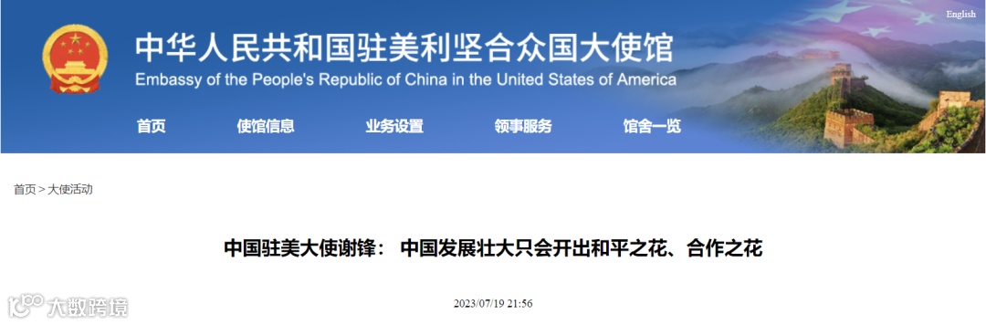 中国驻美大使谢锋:中国发展壮大只会开出和平之花、合作之花