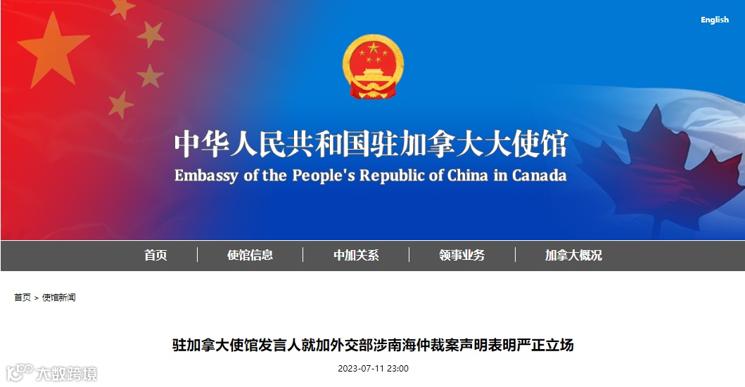 驻加拿大使馆发言人就加外交部涉南海仲裁案声明表明严正立场。