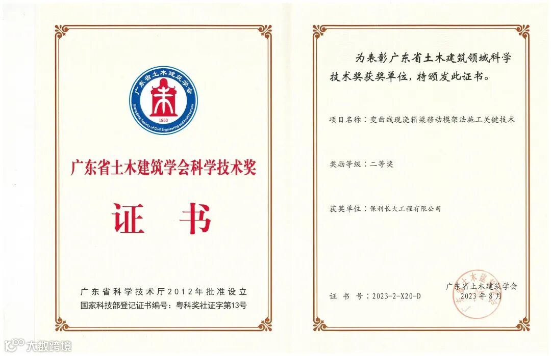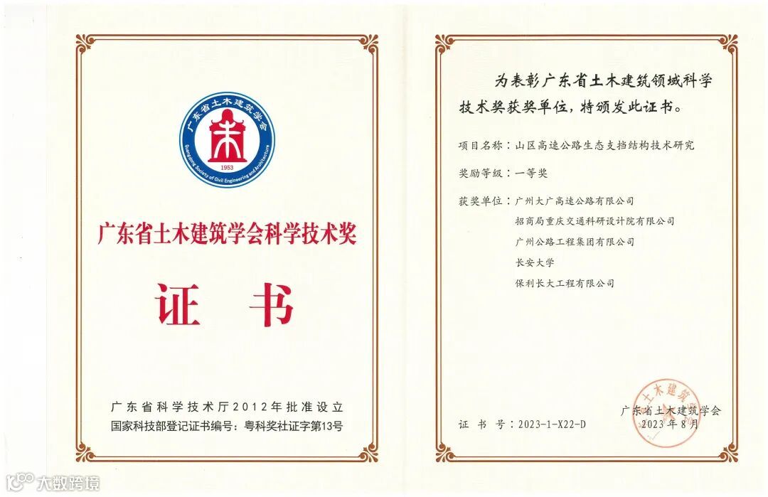 日前,广东省土木建筑学会公布了2023年科学技术奖评审结果,保利长大再添2项省级科学技术荣誉,所承建的大(庆)至广(州)高速公路(粤境段)荣获“广东省土木建筑学会科学技术奖一等奖”,东雷高速荣获“广东省土木建筑学会科学技术奖二等奖”。