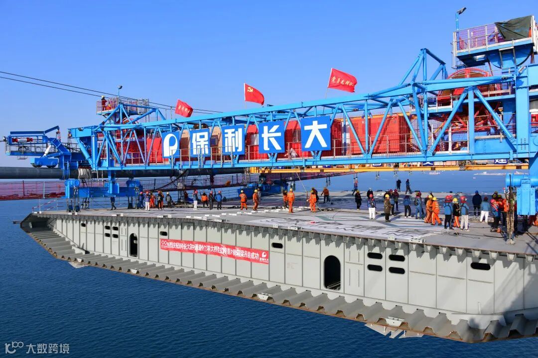 春节期间,深中通道S05标伶仃洋大桥项目近百名建设者坚守岗位,有序推进钢箱梁吊装工作,保证项目建设进度。1月29日正月初八,伶仃洋大桥主跨西侧首件钢箱梁吊装成功。