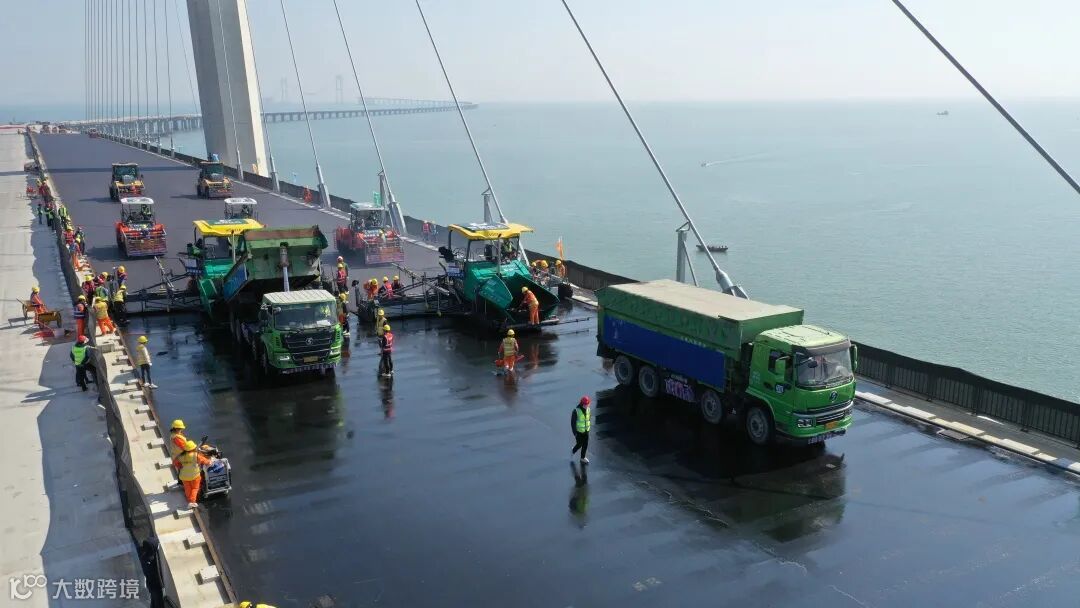深中通道S15标400多名建设者坚守施工一线,于1月19日完成中山大桥左幅钢桥面铺装施工,单日铺装面积达到22300平方米以上,再次刷新钢桥面热拌环氧沥青铺装世界纪录。经过短暂两天的休整,1月23日项目全面复工复产,按计划稳步推进中山大桥路面及附属设施施工。