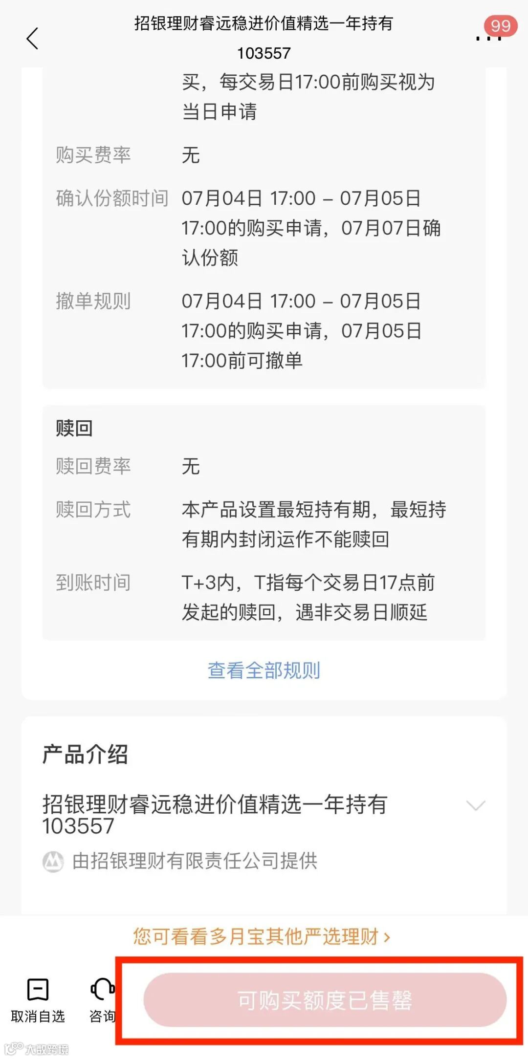 它赫然成了一只网红产品。券商中国记者打开招行APP申购,界面显示着今日可购买额度已售罄。
