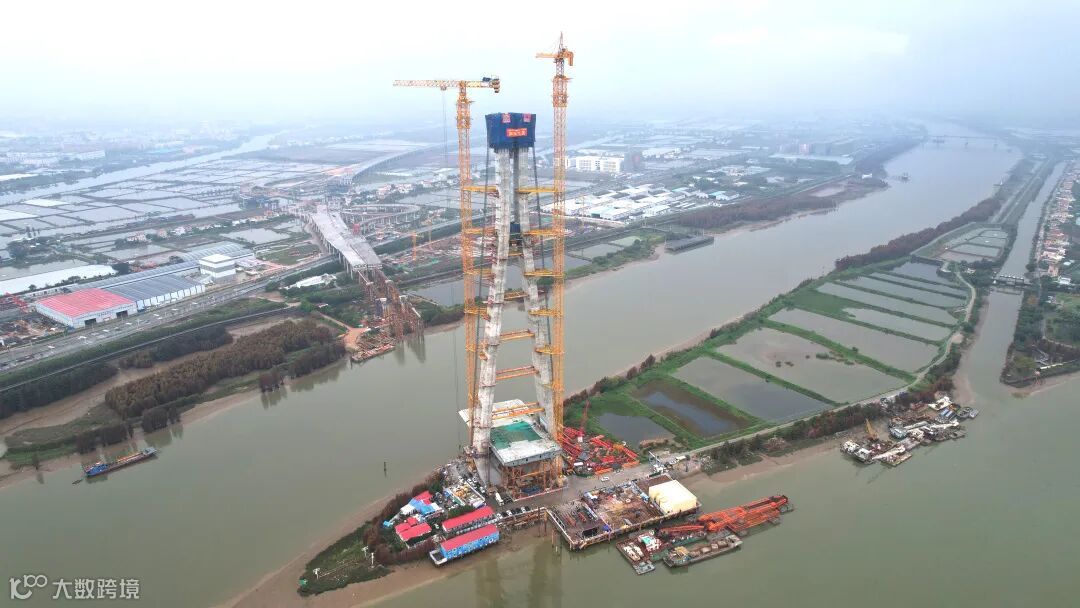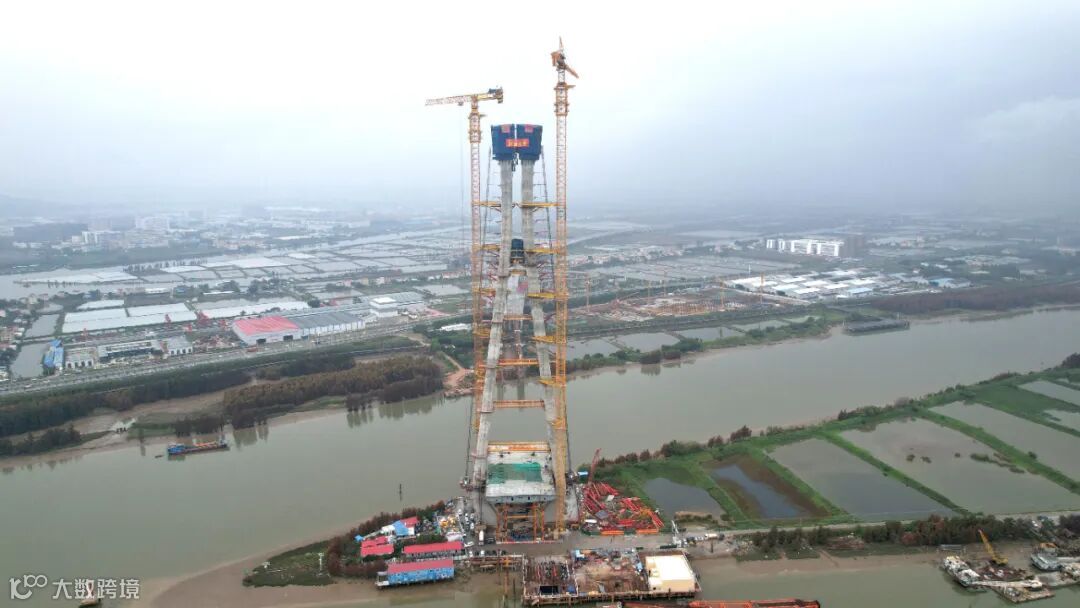 大桥全长912米,主跨390米,索塔高210米,有近70层楼高。主塔采用“宝瓶”型塔身设计,于2021年2月正式开建,共分成35节段施工,总共需浇筑1.9万立方米混凝土。