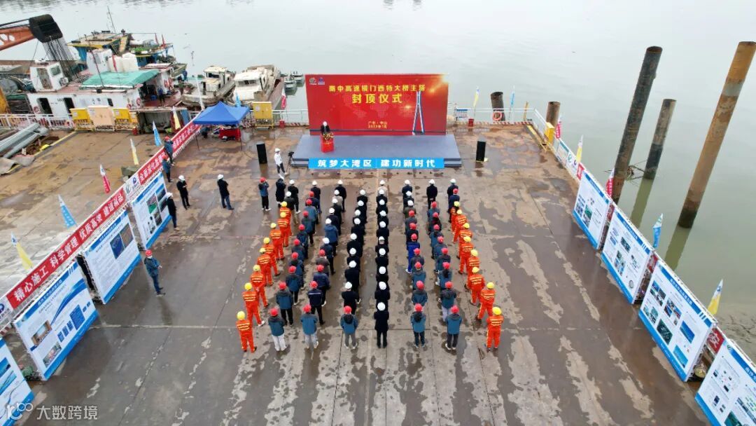1月12日上午10点38分,随着最后一方混凝土浇筑完成,由广州交投集团投资建设、保利长大工程有限公司承建的南中高速横门西特大桥3号主塔顺利封顶,状如“宝瓶”的粤港澳大湾区新地标已现雏形,大桥全面进入斜拉索及钢箱梁施工阶段!