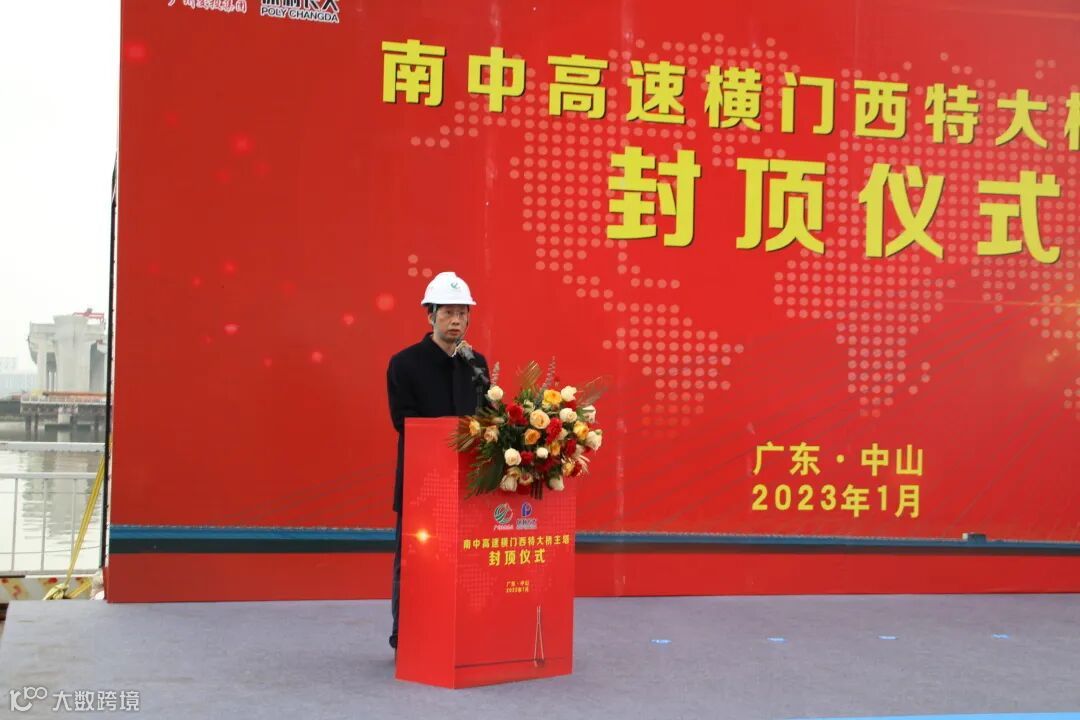 中山市交通运输局副局长何建军,广州交投集团副总经理胡志桥,广州高速公司董事长、总经理何庆华,南中项目总经理曾磊,保利长大总经理王成皿及各参建单位有关领导参加封顶仪式,并现场慰问一线建设者。