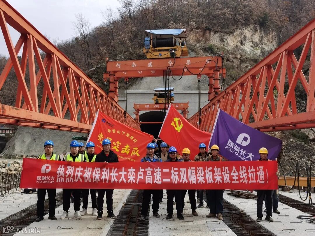 11月16日上午,随着大柏油沟大桥左幅最后一片梁板精确安装完毕,保利长大承建的河南栾卢高速二标预制梁架设全部完工,实现了段标内全线双幅拉通,向通车目标迈出了关键一步。