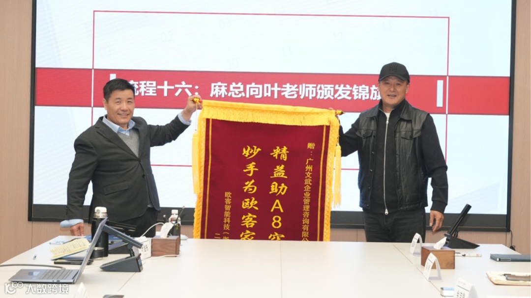 A8空间麻董事长向文武咨询叶老师颁发锦旗