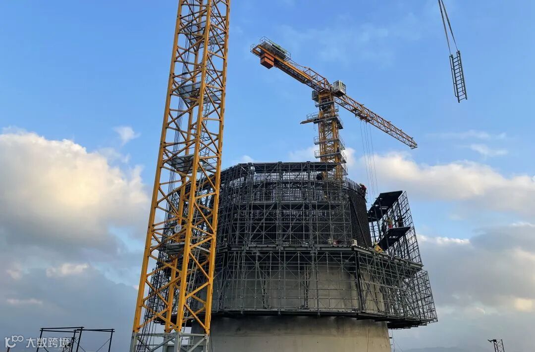 该技术主要应用于黄茅海大桥塔柱施工,单次爬升高度6米,时间均能控制在1.5—2小时之内,是常规的液压爬模爬升施工效率的3倍。