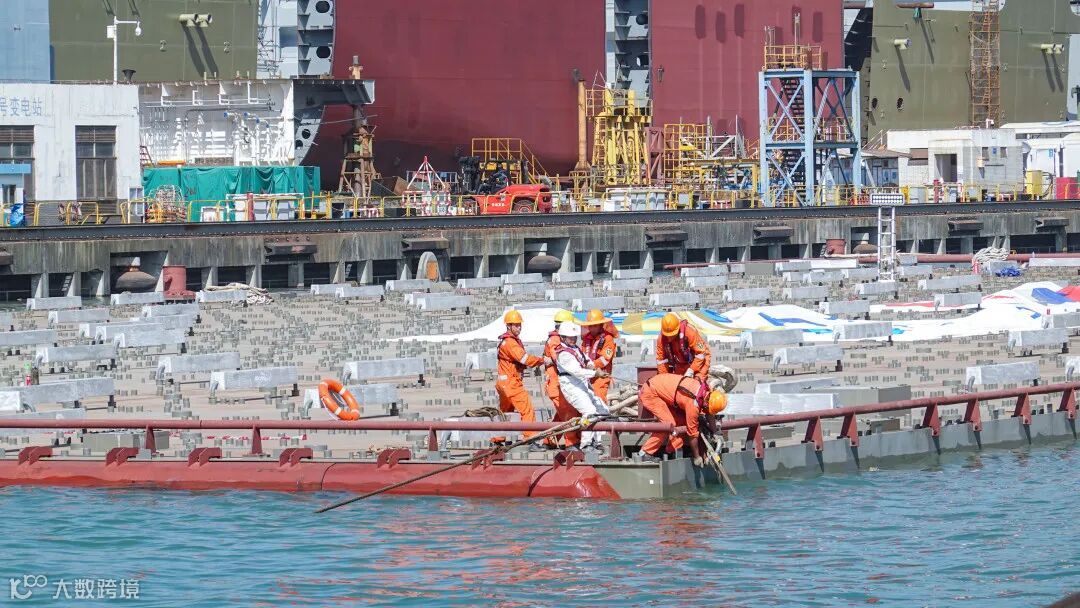 为确保E28管节出坞过程中的稳定性和安全性,建设团队反复优化压舱混凝土设计和制定详细科学的施工方案,并在前四节管节成功出坞的经验基础上,优化出坞操作,简化作业流程,细化施工布置,大幅缩短了出坞施工用时。