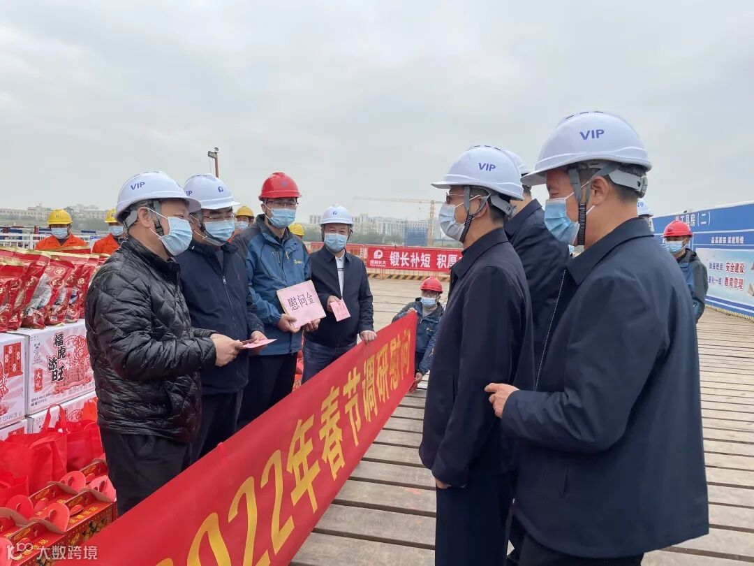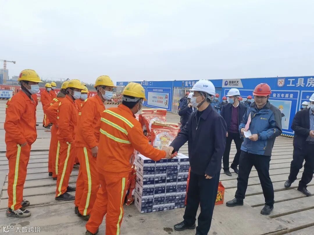 过了腊八就是年。1月12日上午,广东省交通运输厅厅长李静一行到保利长大佛山三水三桥项目调研慰问。省交通运输厅一级巡视员王富民、佛山市市长白涛、副市长乔羽,省交通工会以及省交通运输厅办公室、安全处、运输处等相关负责人,保利长大党委书记、董事长刘刚亮,工会主席王松旺一同调研慰问。