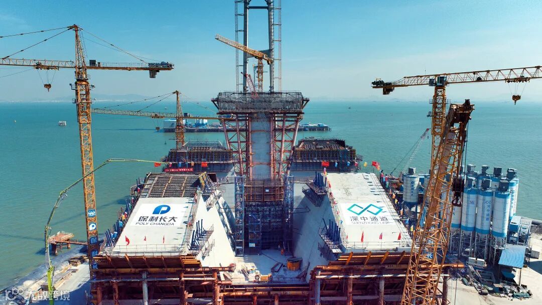 目前,深中通道项目正在保证安全、质量的前提下,全力以赴加快项目建设进度。12月1日17时,经过42小时连续混凝土浇筑作业,伶仃洋大桥西主塔上横梁浇筑完成。