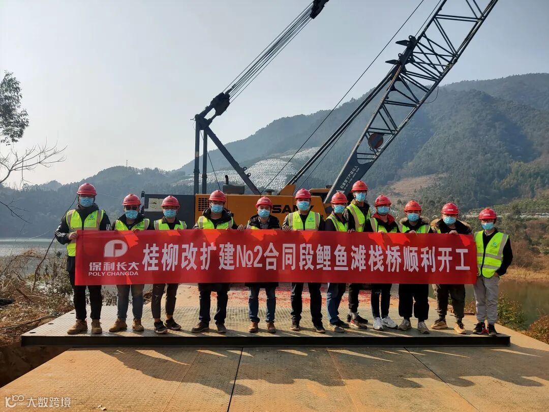 1月18日,保利长大公司承建的桂柳高速改扩建2标关键节点工程鲤鱼滩栈桥顺利开工。桂柳高速改扩建项目是“重塑广西第1路”工程,全长100.914km,采用双向8车道标准,其中保利长大桂柳改扩建2标全长28.09km,预计2023年建成通车。项目的建设是加快西部陆海新通道建设、进一步推动“西部大开发”进程和“泛珠三角洲”各省区联系的纽带,也是中越经贸“两郎一圈”建设不可或缺的组成部分,在国家路网中有十分显要和不可替代的地位和作用。