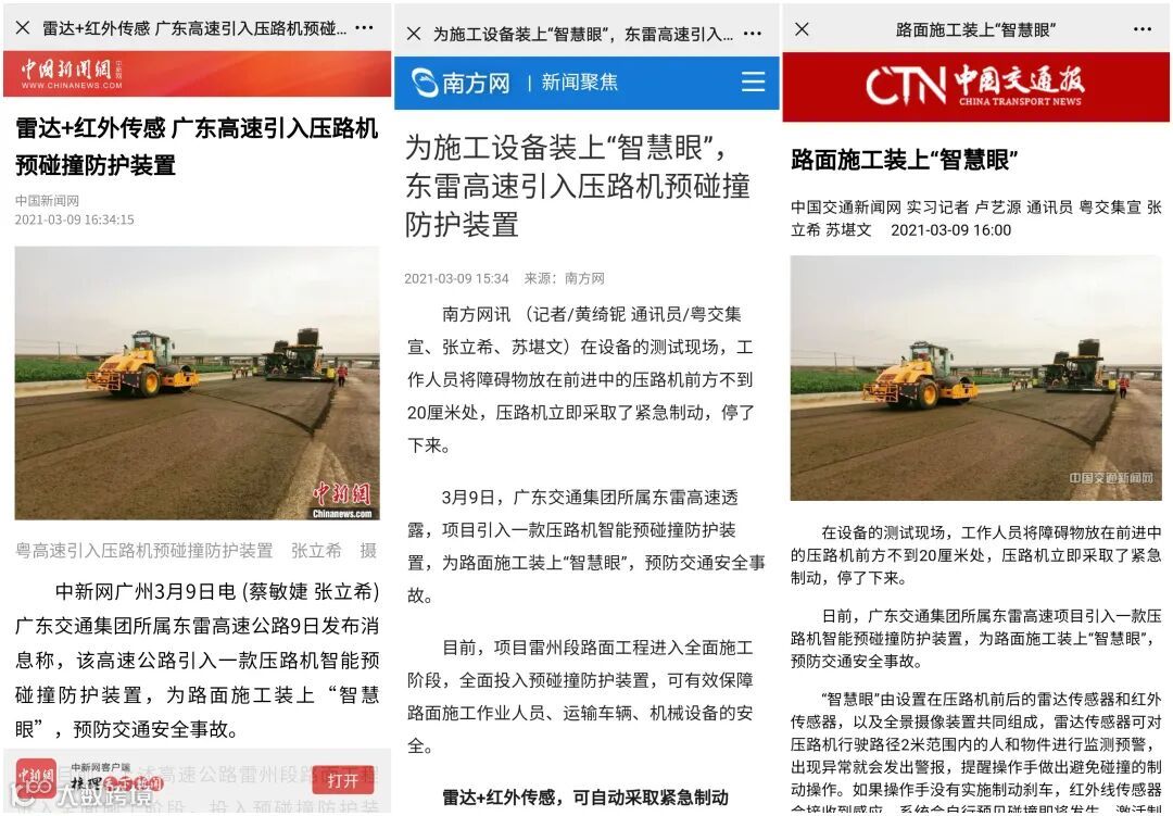 据了解,目前在保利长大公司承建的云茂高速、阳茂改扩建、茂湛改扩建、莞番高速等多个路面工程项目中,均已为施工压路机安装了“智慧眼”。今后承建的路面项目,也都将推广采用这套智能防护装置,让“智能化+”助力项目安全生产。