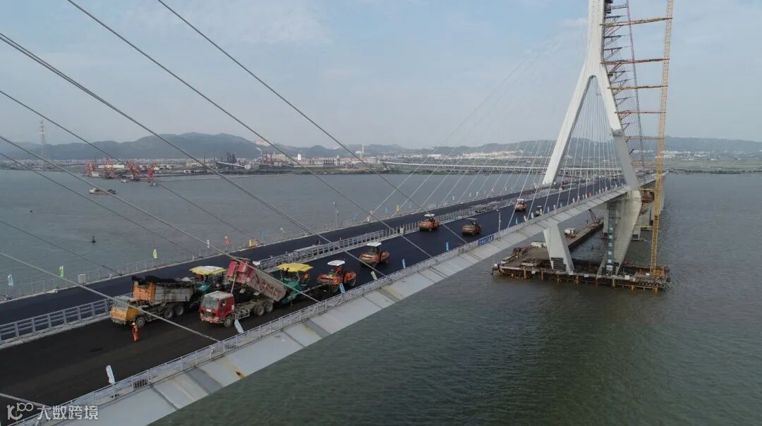 10月18日,潮汕环线高速公路榕江特大桥沥青路面顺利铺装完成。