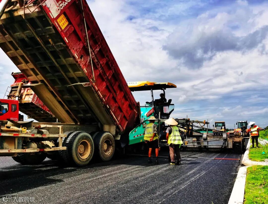 9月15日,吴川支线项目沥青下面层试验段成功摊铺完成。本次沥青试验段施工长度为 600m,采用挂线法施工,沥青下面层厚度为8cm,摊铺宽度为11.75m,所需混合料总量约564m³。