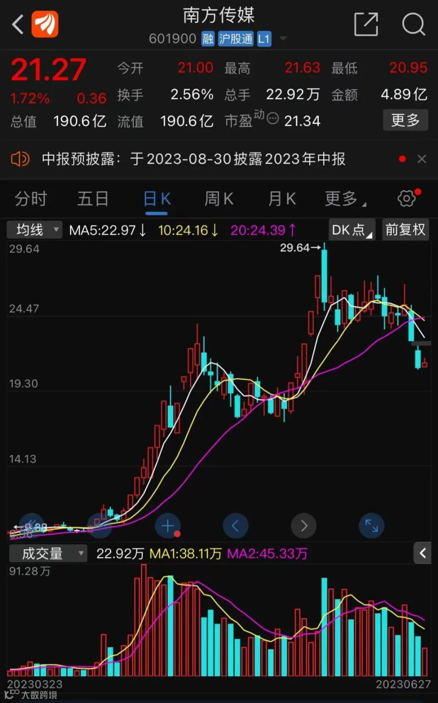 6月27日晚间,南方传媒发布公告称,公司子公司时代传媒集团于6月26日收到证监会下发的立案告知书。因涉嫌传播虚假信息,证监会决定对时代传媒集团立案。