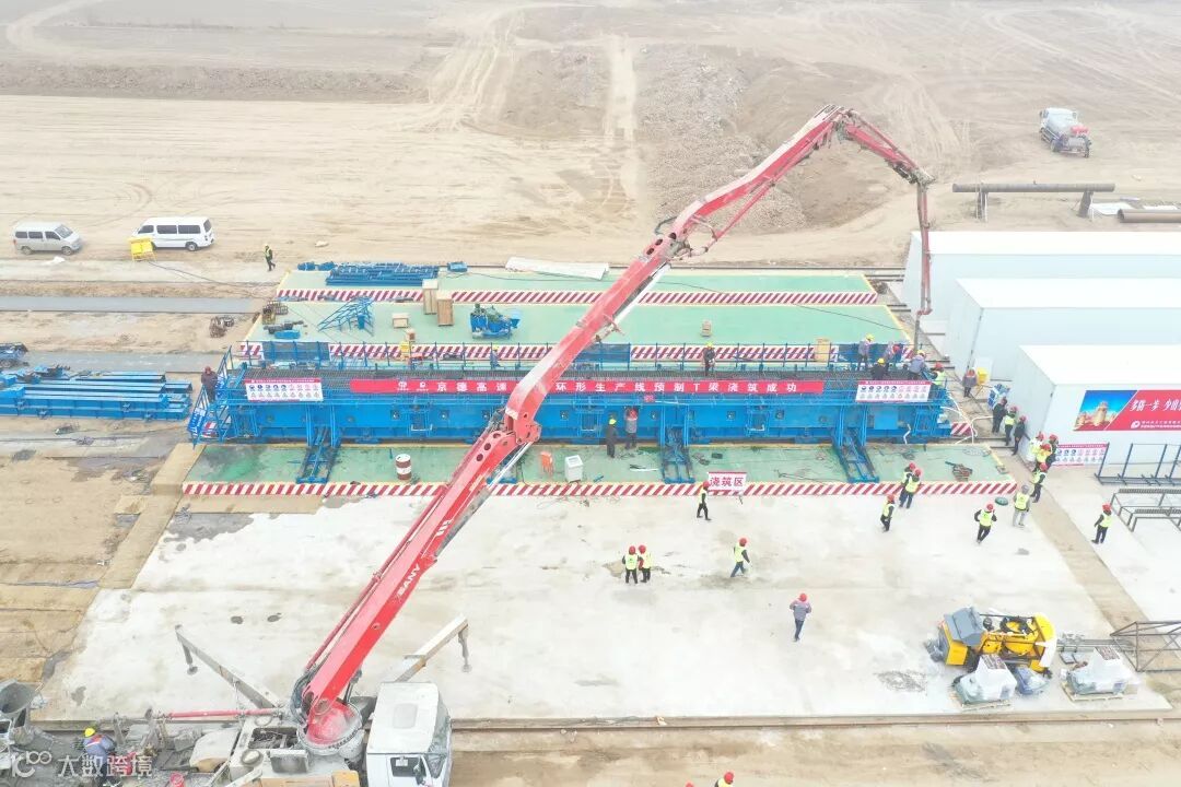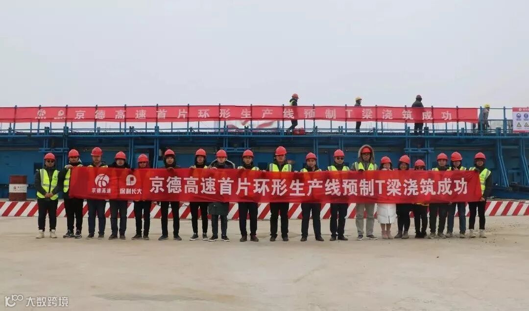 1月18日下午,经过近4个小时的奋战,京德高速ZT9标首片环形生产线预制T梁浇筑成功,这是全线18083片梁板中第一片由环形生产线浇筑的梁板,标志着项目主体工程建设再次取得重大进展。
