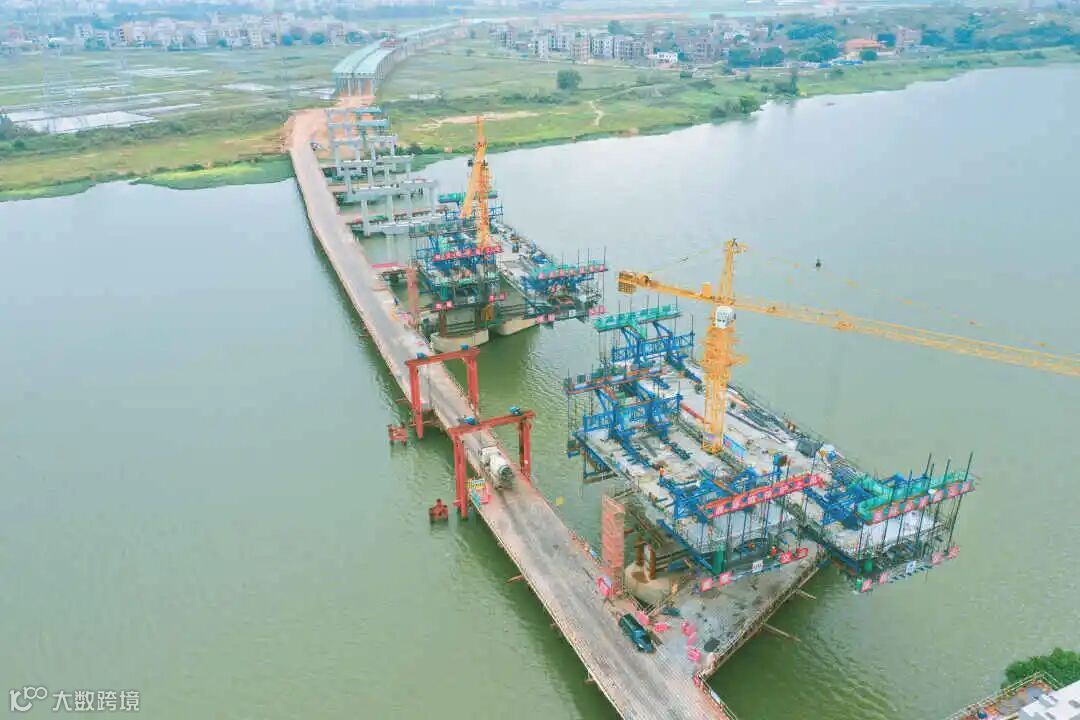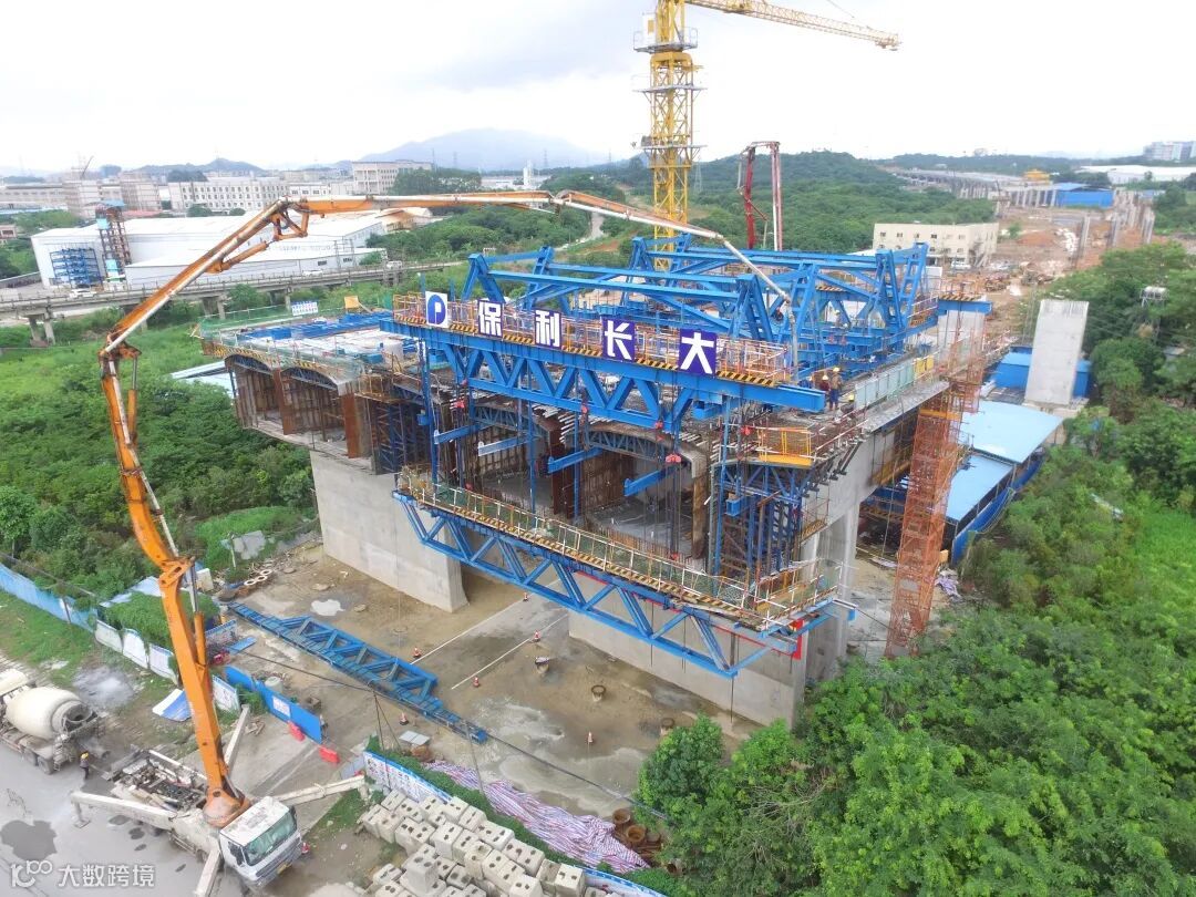 •花莞高速仙村特大桥主桥进行挂篮悬浇作业