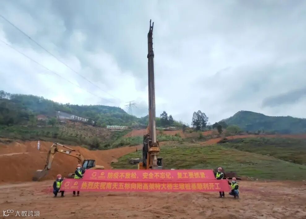 •广西南天高速向阳高架特大桥试验桩开始施工