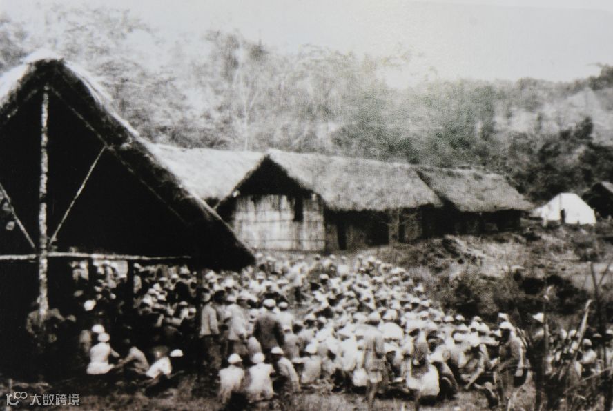 1953年,华南公路修建工程总指挥部在海南修建海榆中线国防公路时搭建的茅草工棚。
