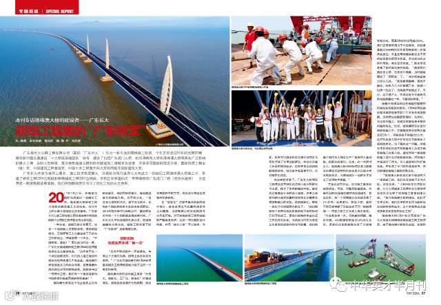 港珠澳大桥是迄今为止世界上总体跨度最长、钢结构桥体最长、海底隧道最长的跨海大桥。自开建以来,一直受到全世界的关注。据不完全统计,有90多个国家的桥梁专家前来参观研究。2016年杭州举行G20峰会时,播放的宣传片第一个介绍的就是港珠澳大桥。广东长大从中标到通航孔桥合龙,再到桥面铺装全线完成,超级工程里留下的“广东铁军”身影熠熠生辉。