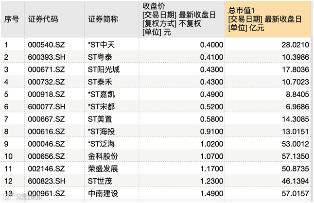 强制退市,正在成为A股房地产板块的达摩克里斯之剑。据中银证券统计,目前房地产行业上市公司主要面临的退市风险为“面值退市”即“1元退市”(连续20个交易日收盘价均低于1元)。