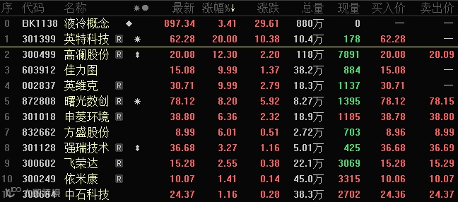 英特科技今日20cm涨停,公司产品包括液冷散热器,直冷式液冷散热器应用在大数据中心。