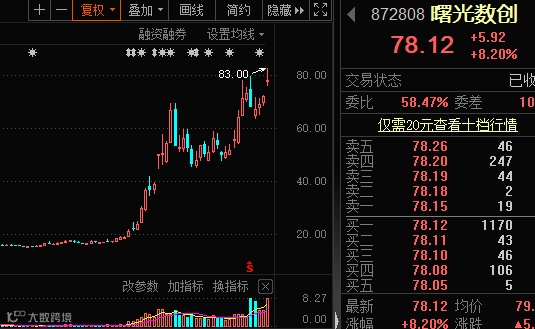 作为液冷服务器概念龙头,曙光数创此前发布的一季报凸显行业热度。报告显示,公司第一季度营业收入为2.48亿元,比上年同期增长7099.03%;归属于上市公司股东的净利润为6180万元,较上年同期扭亏为盈。曙光数创今年股价持续暴涨,年内累计涨幅超过6倍,超过剑桥科技等一众牛股,成为A股今年最强的股票。