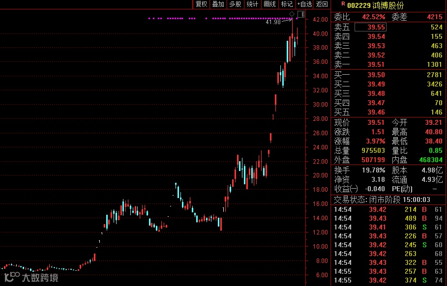 鸿博股份既有主营业务为安全印务,系彩票印刷行业的龙头企业之一。 今年以来,公司股价走势强劲,年内涨幅近5倍。2月9日至今,鸿博股份已累计发布9则异动公告。