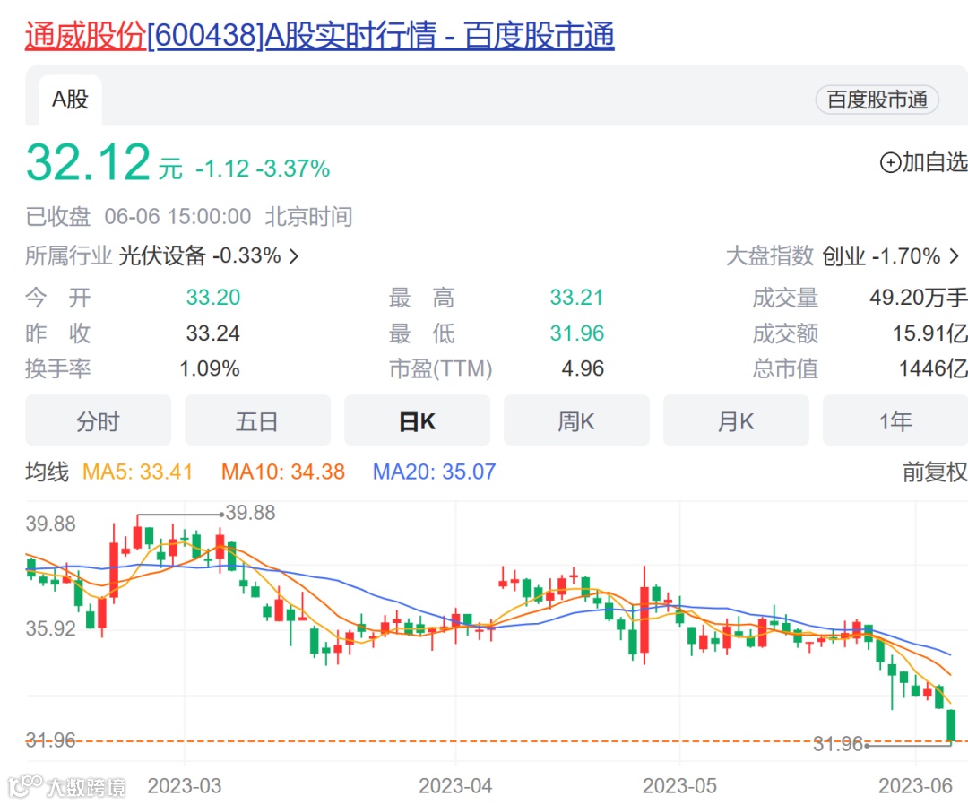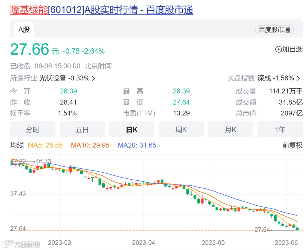 从市场表现来看,今年以来通威股份股价累计下跌近17%,隆基绿能股价累计下跌近35%。