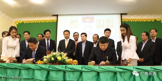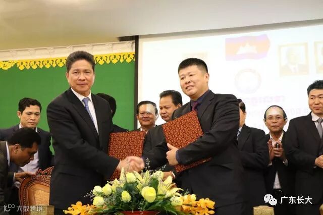 广东省长大公路工程有限公司海外公司副总经理徐科和柬埔寨运输部部长孙占托代表双方签约。