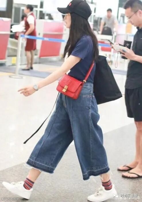 阔腿裤设计不同于常见普通款式,这次王艳选择一款八分长复古蓝牛仔阔腿裤,给人感觉耳目一新,完全不用担心会出现撞款情况,宽松廓形设计让阔腿裤可以修饰更多腿部线条;