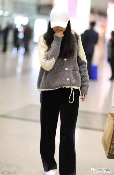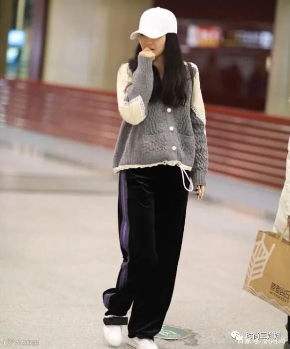不要以为阔腿裤就不能搭配宽松衣物,像王艳这样穿上羊羔毛外套,可以打造出慵懒休闲效果,小仙女们可以放心冲;羊羔毛外套以灰色和白色相结合,拼色位置还接入白色花边装饰,衬得造型更加可爱软糯,衣摆位置结合白色抽身设计,还可以突显出高腰线位置。