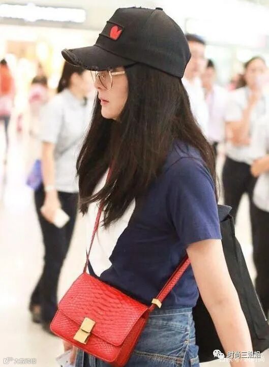 提亮色调为红色和白色,最为抢眼当属红色包包和小白鞋,在大片深蓝色造型下,加入夺目鲜艳红色和清新纯洁白色,为整体效果完美注入亮点细节和不同色彩感,也展现出王艳自身不俗私服穿搭功底。