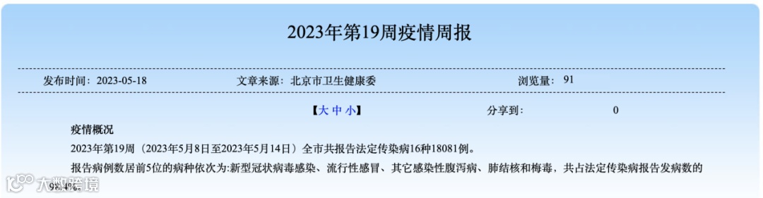 5月18日,北京市疾病预防控制中心发布的疫情周报显示,2023年第19周(5月8日至5月14日),新冠感染数再度超过流感,已连续三周成为法定传染病病种排名第一。5月8日-14日北京市共报告的法定传染病超过1.8万例,相比前一周增加7573例。