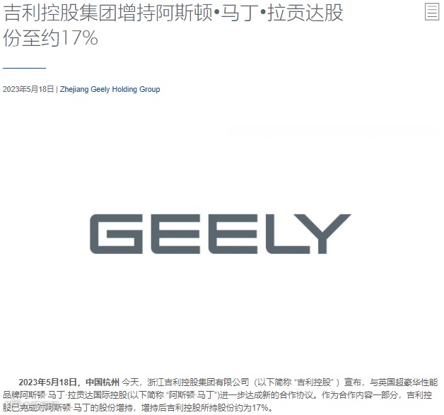 2022年11月,吉利控股完成入股雷诺韩国汽车,将向韩国市场推出全新混动技术及车型。据了解,新产品将采用吉利控股位于瑞典研发中心研发的CMA模块化架构,并使用吉利的混动技术,预计2024年量产。