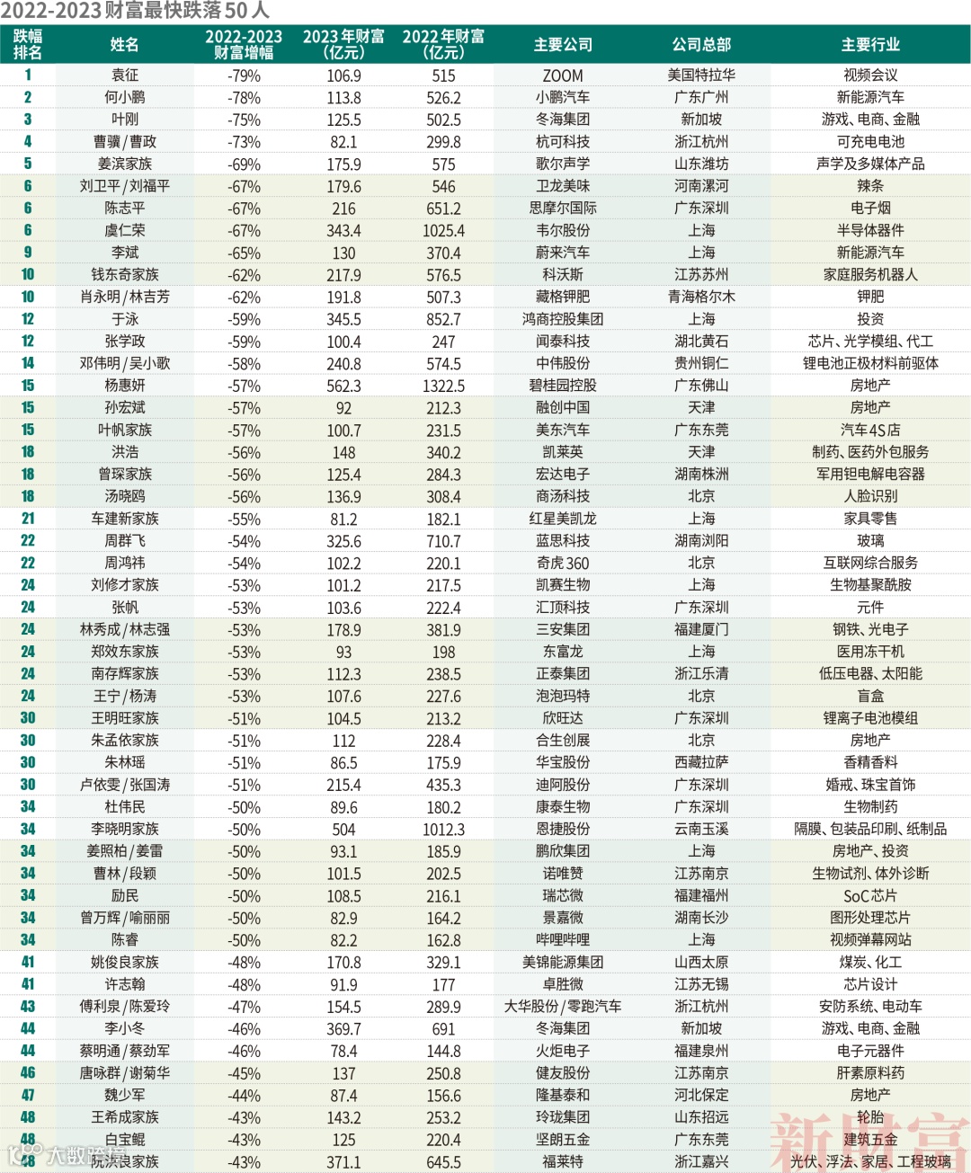 2022-2023财富最快跌落50人