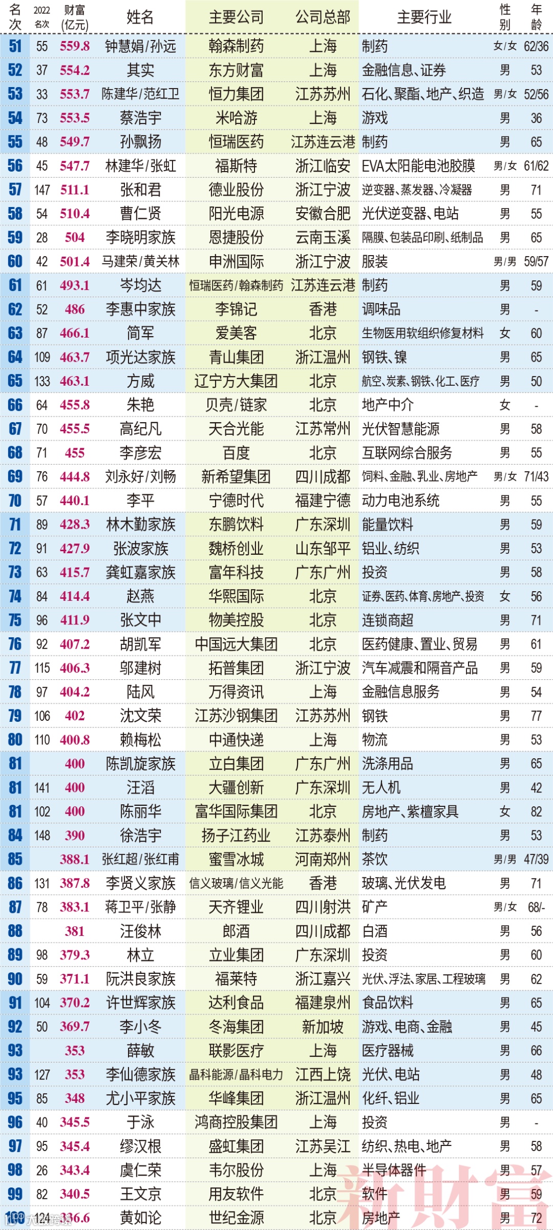 2022-2023财富最快成长50人