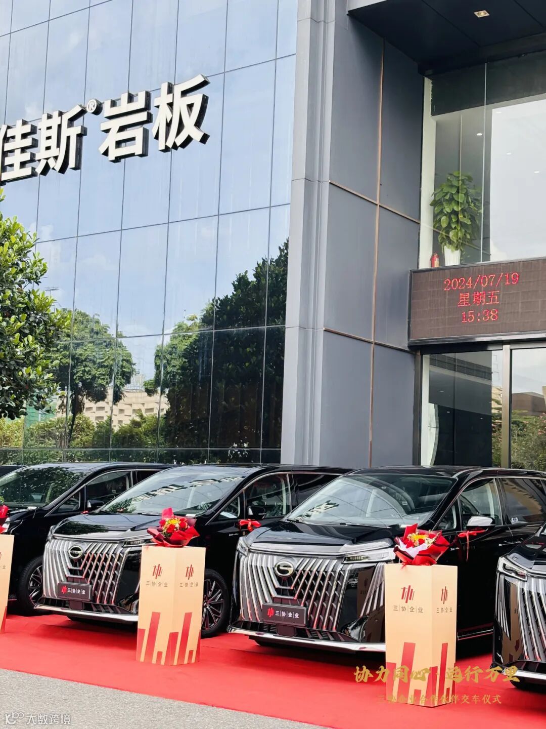 三协企业为合作伙伴特定18台传祺M8商务车。7月19日下午16:00,首批6台商务车交付仪式完美收官!崭新商务车整齐亮相在三协企业总部展厅正门,格外引人注目!