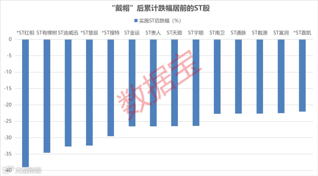 今年以来,共有59股新晋“ST”,除ST路通因违规担保而被“戴帽”外,其余均因2022年报相关问题实施ST。新晋ST股股价普遍大幅下降,六成个股累计跌幅在10%以上,其中已有7股最新收盘价不足1元/股,包括*ST搜特、*ST蓝光、*ST中天、*ST庞大、*ST嘉凯、ST美置、*ST泛海,目前*ST蓝光已触及面值退市,*ST中天亦提前锁定了“1元退市”。