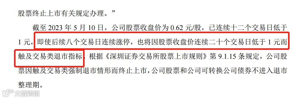 昨日晚间,*ST搜特发布公告表示,公司股价已连续12个交易日低于1元,即使后续八个交易日连续涨停,也将因股票收盘价连续20个交易日低于1元而触及交易类退市指标,公司股票因触及交易类强制退市情形而终止上市,公司股票和公司可转换公司债券不进入退市整理期。