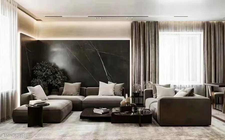 黑骑士丰富的质感肌理勾勒着深邃的黑,利落而优雅地传达空间的张力。户主将其运用于客厅的墙面或地面,搭配素色软装,深浅交织下呈现家的雅致,让整个空间看起来低调而不失内涵。