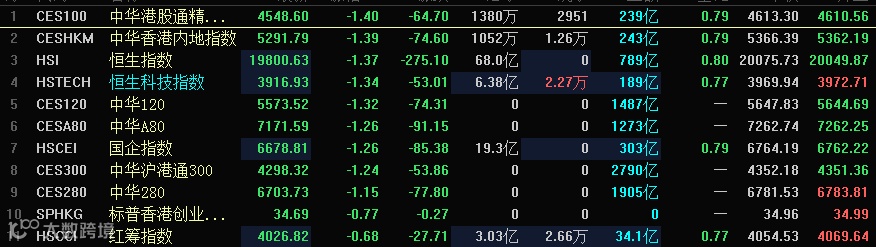 港股市场下午率先杀跌,对A股亦有带动作用。恒生指数午后开盘跌幅迅速扩大至1%以上。