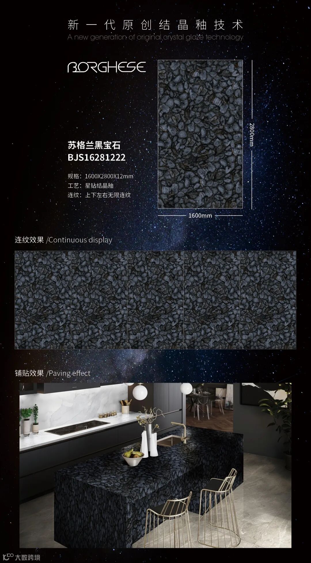 贝佳斯岩板推出连纹密缝铺贴,让大理石纹向外自由生长开来,使有限的空间在视觉上得到无限延伸。大大弱化了空间缝隙的存在感,进一步加深了空间开阔的意境和丰富的层次感。