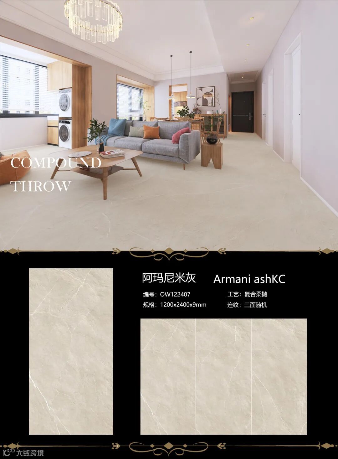 3. 经过多重柔抛使瓷砖表面更加平整,针对立体面的层次起伏多番柔抛后光滑如镜,只有微小凹凸反射散发柔光,绝不显现“水波纹”